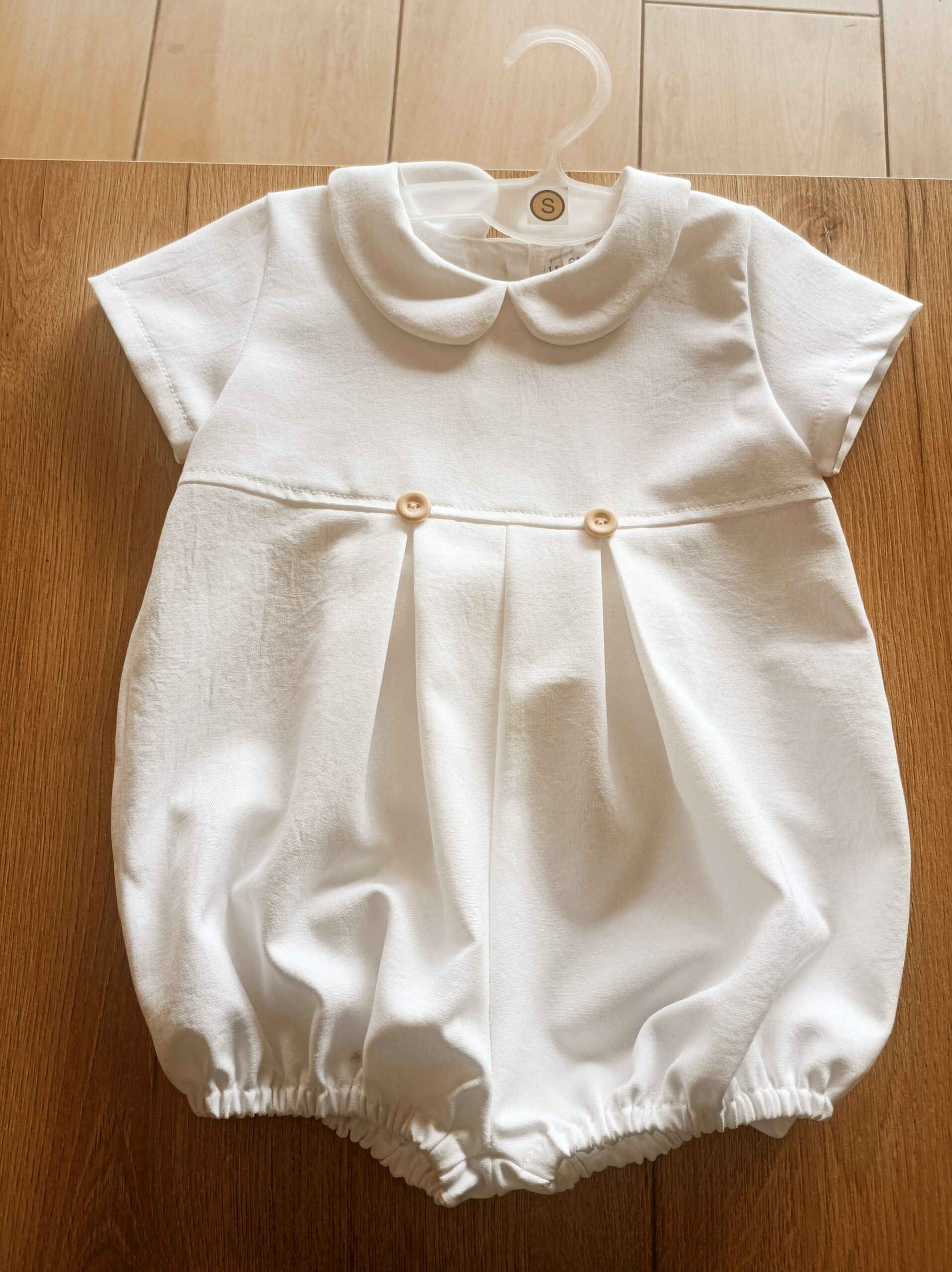 Rampers jest wykonany z miękkiego materiału. Cały strój pięknie się prezentuje bez potrzeby dodatkowych elementów. Luźny fason zapewnia dziecku swobodę podczas raczkowania i zabawy. Produkt dostępny na zamówienie.