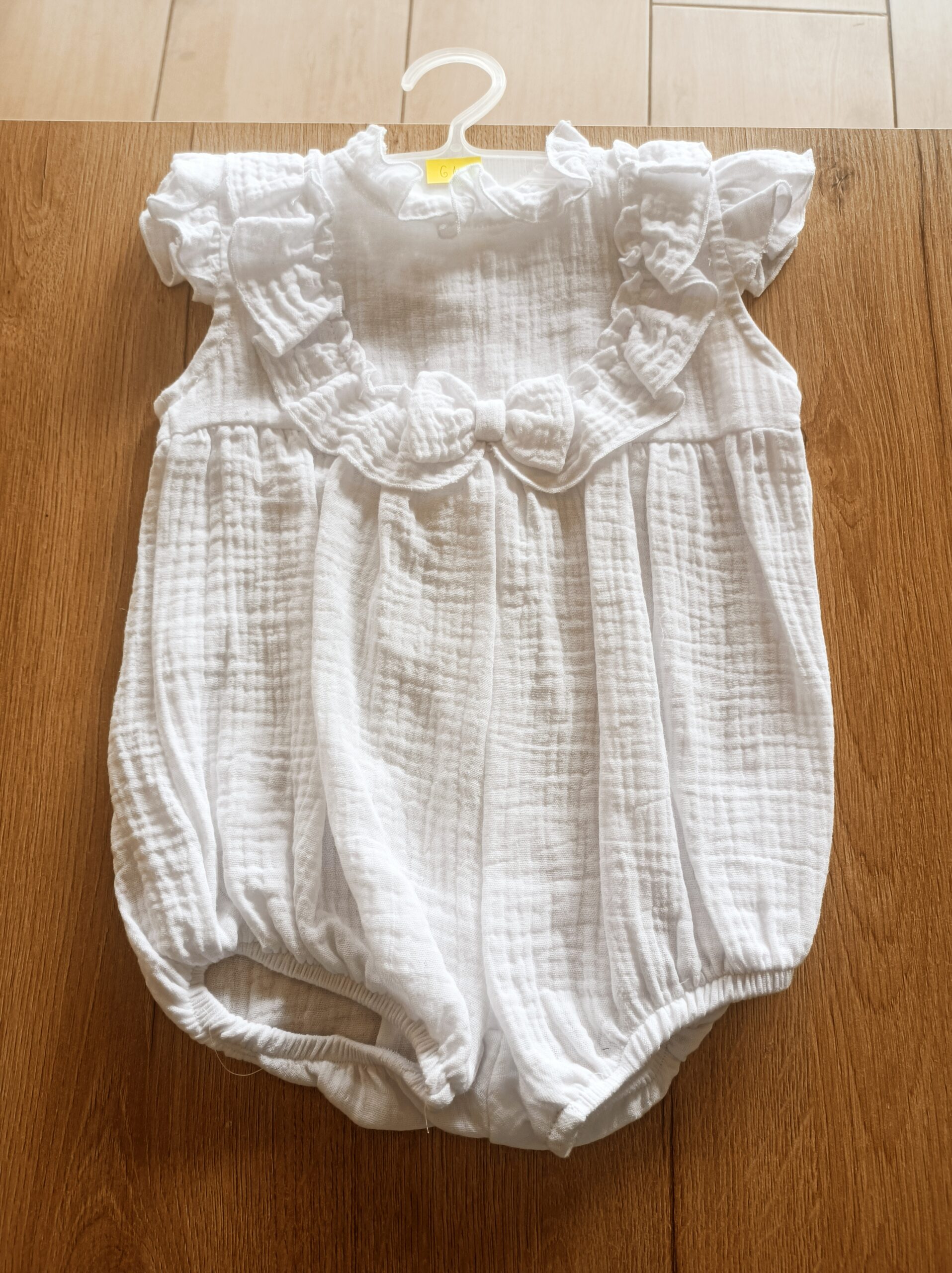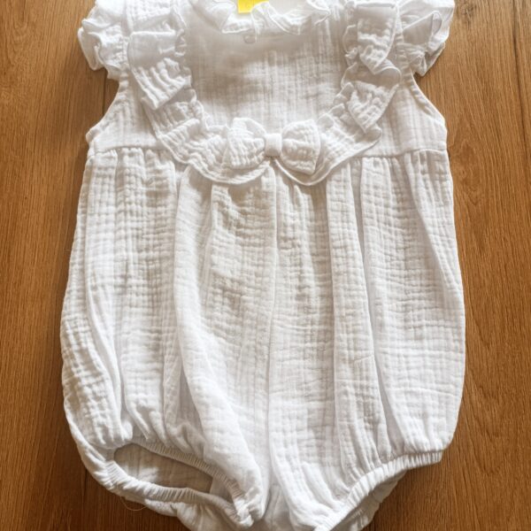 Elegancki biały rampers dla niemowląt, wykonany z najwyższą precyzją przez doświadczoną krawcową. Model, który łączy klasykę i wygodę. Miękki i przewiewny materiał, bezpieczny da skóry dziecka. Produkt dostępny na zamówienie.